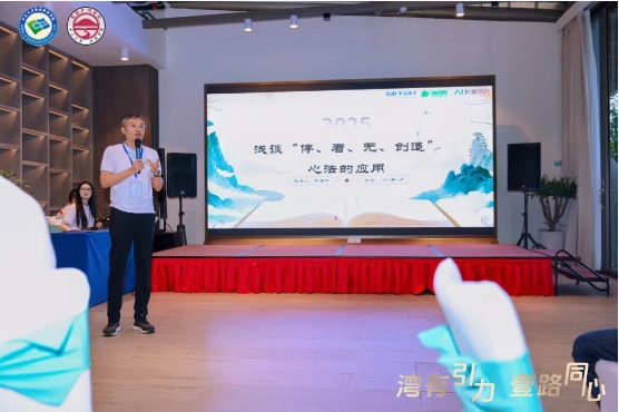 深圳校友会副会长陈海升带来共生之问分享,浅谈”停无、创造、必法的应用,探讨认知对世界的塑造作用,呼吁校友“了解自己、遵循规律、拥抱变化”,以“小我”成就“大我”,用行动创造因果。