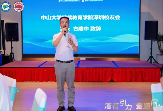 深圳校友会会长古建中致辞,向全体与会嘉宾表达了诚挚的欢迎,他表示,以今日之聚为新的起点,同心同行,共创未来!